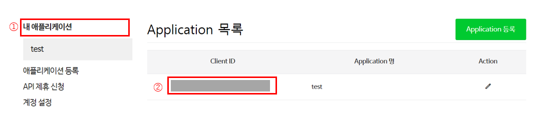 아래의 순서로 클릭하면 본인의 client_id 및 client_secret의 확인이 가능합니다.